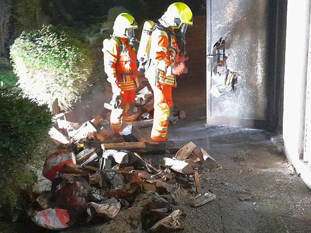 Die FF Ergoldsbach wurde nach Prinkofen zum Brand in einem Heizungskeller alarmiert. Dort kam es zu einer Verpuffung, in deren Folge sich brennbares Material, das im Raum gelagert war, entzündete. Unter Einsatz von Atemschutztrupps wurden das Feuer bekämpft, Nachlöscharbeiten durchgeführt und verbrannte Teile aus dem Raum entfernt. Um das Wohnhaus rauchfrei zu bekommen kam ein Hochleistungslüfter zum Einsatz. |