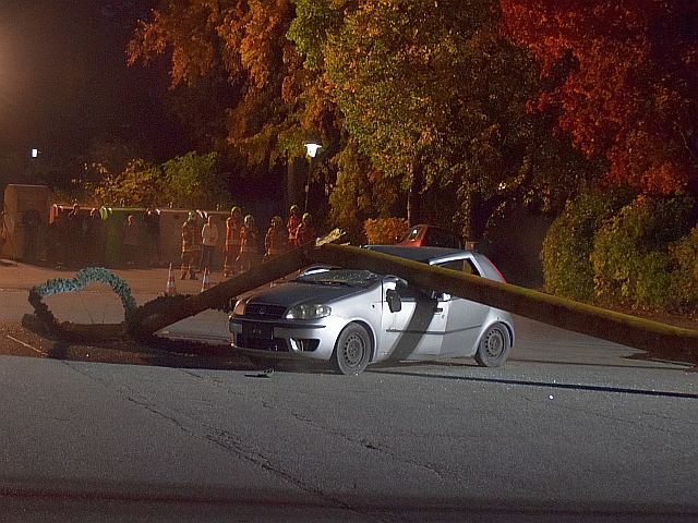 Als Szenario für die Übung zur Technischen Hilfeleistung wurde angenommen, dass sich am Viehmarktplatz ein Verkehrsunfall ereignet hat. Dabei wurde der Maibaum so stark beschädigt, dass er umkippte und auf einen Pkw fiel. Eine Person wurde dabei im Fahrzeug eingeklemmt. Durch den Unfall hat sich ein Fahrer in einem zweiten Fahrzeug so erschrocken, dass er die Kontrolle über sein Auto verlor und einen Fußgänger zwischen dem Auto und einem Baum einklemmte. Der Pkw drohte den Abhang zum Goldbach hin abzurutschen. Der zweite Pkw wurde mit der Seilwinde des RW 2 gesichert, damit er nicht weiter abrutschen konnte. Auch hier konnte die am Baum eingeklemmte Person nach kurzer Zeit aus ihrer misslichen Lage befreit werden. Um die Kenntnisse und Fertigkeiten mit den hydraulischen Rettungsgeräten weiter zu vertiefen wurde auch bei diesem Fahrzeug die große Seitenöffnung hergestellt. Save the date: Am 1. Mai 2026 wird am Viehmarktplatz ein neuer Maibaum aufgestellt. Der alte Maibaum wurde zersägt und wird voraussichtlich nach dem Maibaumaufstellen an den Meistbietenden versteigert. |