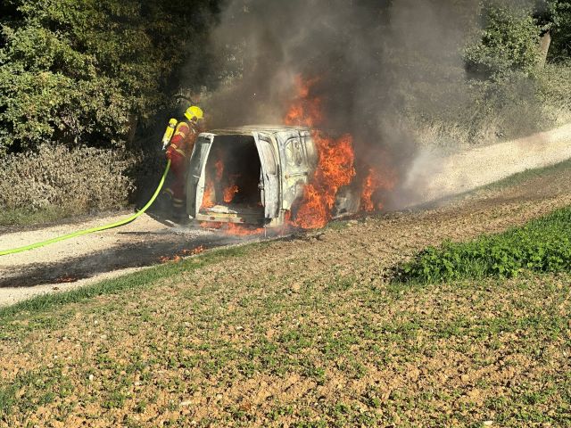 Die FF Ergoldsbach wurde zum Brand eines Pkw auf der Straße zwischen Oberdörnbach und Kläham alarmiert. Dort stand der Pkw beim Eintreffen der Feuerwehren bereits in Vollbrand. Das Feuer konnte unter Einsatz von Atemschutztrupps schnell unter Kontrolle gebracht und gelöscht werden. |