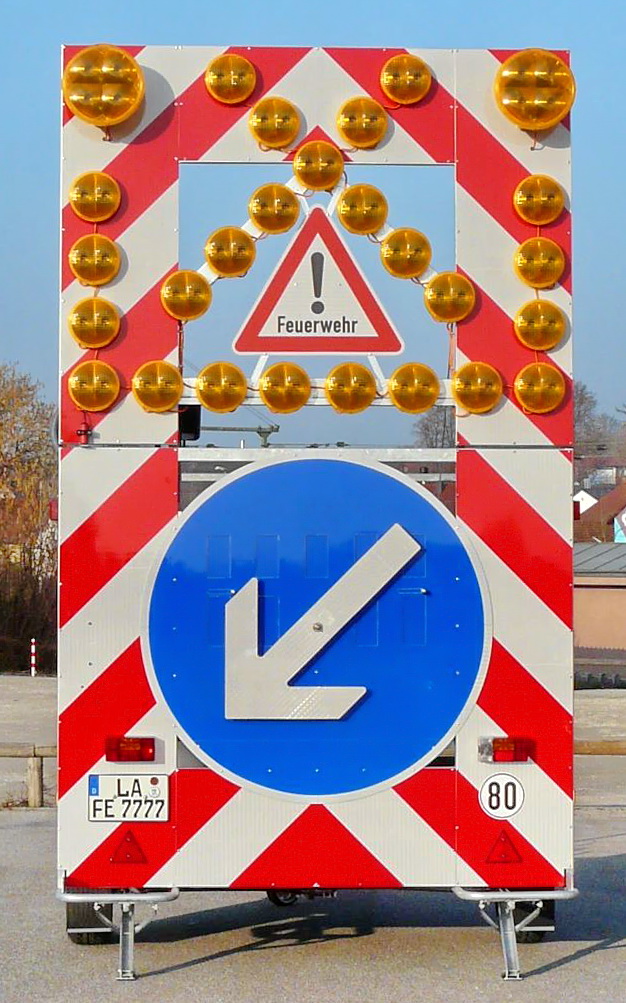 - Pfeilzeichen mit verschließbaren Sichtschlitzen, mit retroreflektierender Folie und motorischer Dreheinrichtung