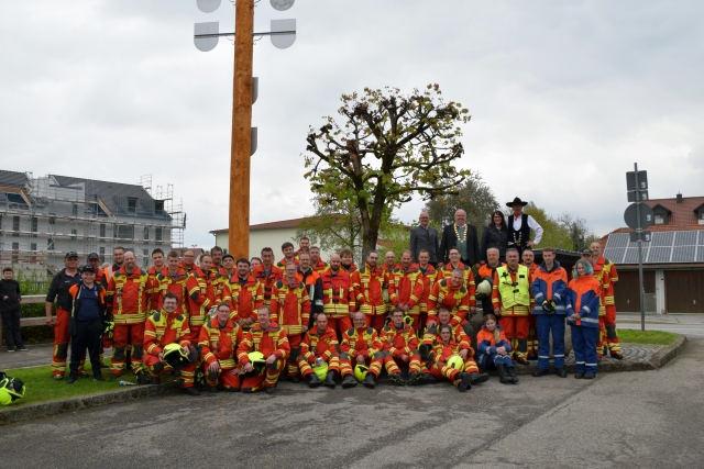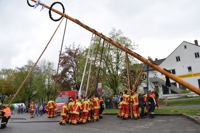 Abweichend vom vierjährigen Turnus konnte pandemiebedingt erst 2022 unter der Federführung der FF Ergoldsbach wieder ein neuer Maibaum aufgestellt werden. Gestiftet hatte den Maibaum erneut die Familie Rengstl aus Oberdörnbach. In unzähligen Arbeitsstunden wurde der Baum von der aktiven Mannschaft geschält, gehobelt, gestrichen und mit Tafeln und Kränzen geschmückt. Nach dem Marsch mit einer Musikkapelle vom Volksfestplatz zum Viehmarktplatz konnte der Maibaum von den Wehrmännern und -frauen unter der Regie von Zimmerermeister Hans Eichmeier mit „Hebt an“ und viel Irxn-Schmalz von der Waagrechten in die Senkrechte gebracht werden. Beim anschließenden Biergartenbetrieb ließen sich die zahlreichen Gäste bis in den späten Nachmittag hinein Schmankerl vom Grill, Käse und Kaffee und Kuchen schmecken.