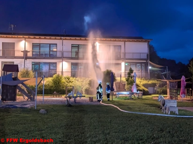 Ein angenommener Gebäudebrand im VHS-Gebäude in Jellenkofen mit vermissten Personen stellte die Feuerwehren aus Prinkofen, Ergoldsbach, Langenhettenbach, Kläham und Paindlkofen vor eine komplexe Herausforderung. Atemschutzgeräteträger retteten die Personen aus dem verrauchten Gebäude und übergaben sie dem Rettungsdienst zur weiteren Versorgung.. Parallel dazu wurde die Wasserversorgung vom Goldbach aufgebaut und der Löschangriff gestartet. |